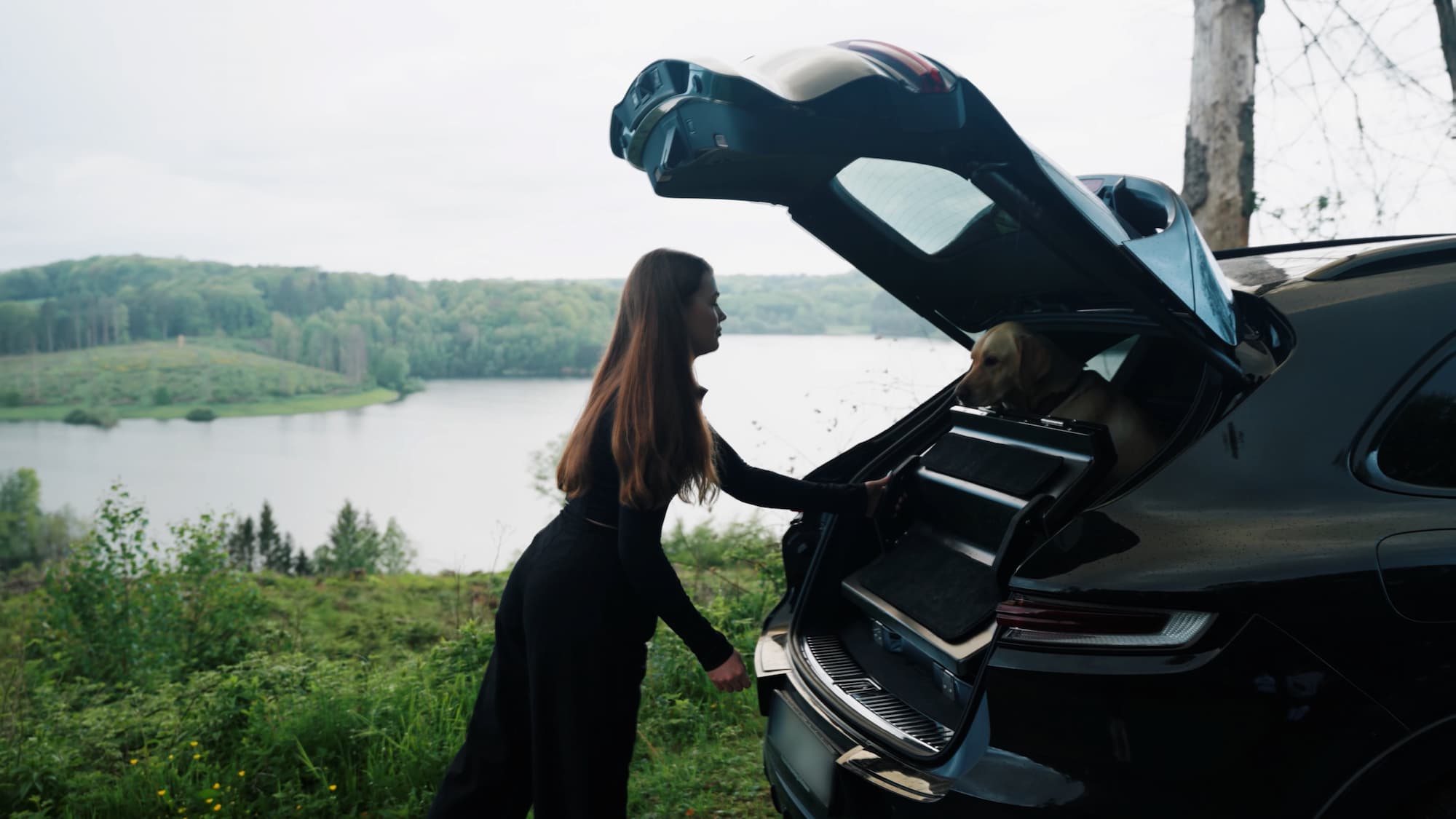 Unser Komplettsystem ist als durchgehende Einheit konzipiert – nicht als zwei separate Add-ons. Die Carbon-Trittstufen werden auf einem fahrzeugspezifischen Rahmen montiert und schließen bündig an der Ladekante an – für einen sicheren, gelenkschonenden Ein- und Ausstieg. Die Transportbox wird passgenau nach den Konturen Ihres Kofferraums gefertigt, sitzt sauber und stabil und bietet dank stoßdämpfender Fiberglas-Gitterelemente sowohl Luftzirkulation als auch hohe Stabilität.
